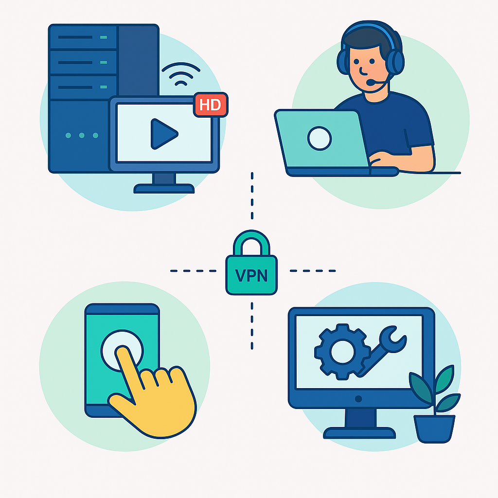 - Acceso remoto seguro: Soluciones de acceso remoto sin necesidad de software adicional.